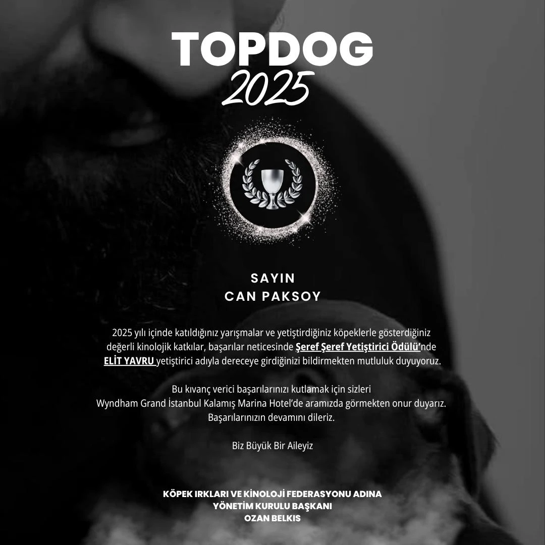Köpek Irkları ve Kinoloji Federasyonu’nun düzenlediği Top Dog yarışmasında, 2025 yılı boyunca katıldığımız tüm organizasyonlarda elde ettiğimiz üstün derecelerle başarımızı bir kez daha kanıtlamış olduk. Yurt içi ve yurt dışındaki güçlü rakiplerimize karşı gösterdiğimiz bu istikrarlı performans, Türkiye’de düzenlenen yarışmalarda yalnızca yurtdışındaki organizasyonlara katılarak kazanılan puanlar hariç tutulduğunda, bizi geçebilen hiçbir rakibin olmamasıyla bu yıl da açıkça ortaya konmuştur./// Düzenlenen son yarışmada toplam 4 kategorinin tamamında dereceye girerek önemli bir başarıya imza attık. En prestijli kategoriler arasında yer alan “En İyi Yetiştirici” dalında birincilik, “En İyi Yetişkin” kategorisinde ise ikincilik elde ettik./// Bu anlamlı başarıların tamamı, uzun soluklu çalışmalarımızın ve güçlü ekip ruhumuzun bir sonucudur.// Elit Yavru Petworld Kennel olarak, elde ettiğimiz bu derecelerden büyük bir gurur ve mutluluk duyuyor; emeği geçen tüm ekip arkadaşlarımıza teşekkür ediyoruz.////